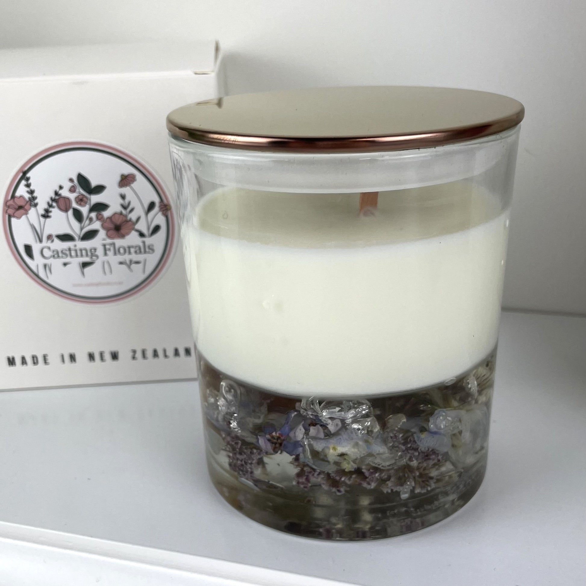 No these are not resin candles but a little something I came a cross and had to have a go with. The flowers are dried and preserved in a glass candle jar in Gel Wax and then topped with a soy candle, with a wooden wick, scented subtly with Jasmine.